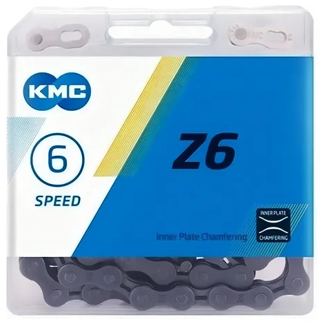 La KMC Z6 está pensada para sistemas de 6 velocidades, brindando buena durabilidad, rendimiento confiable y un precio accesible. Ideal para bicis de ciudad o paseo.